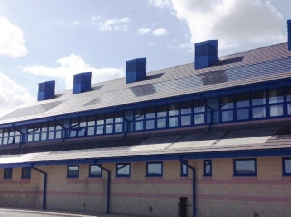 Seen below is a view of the PV array and one of the Passive Ventilation turrets. Watch out for more pictures of the complex next month.